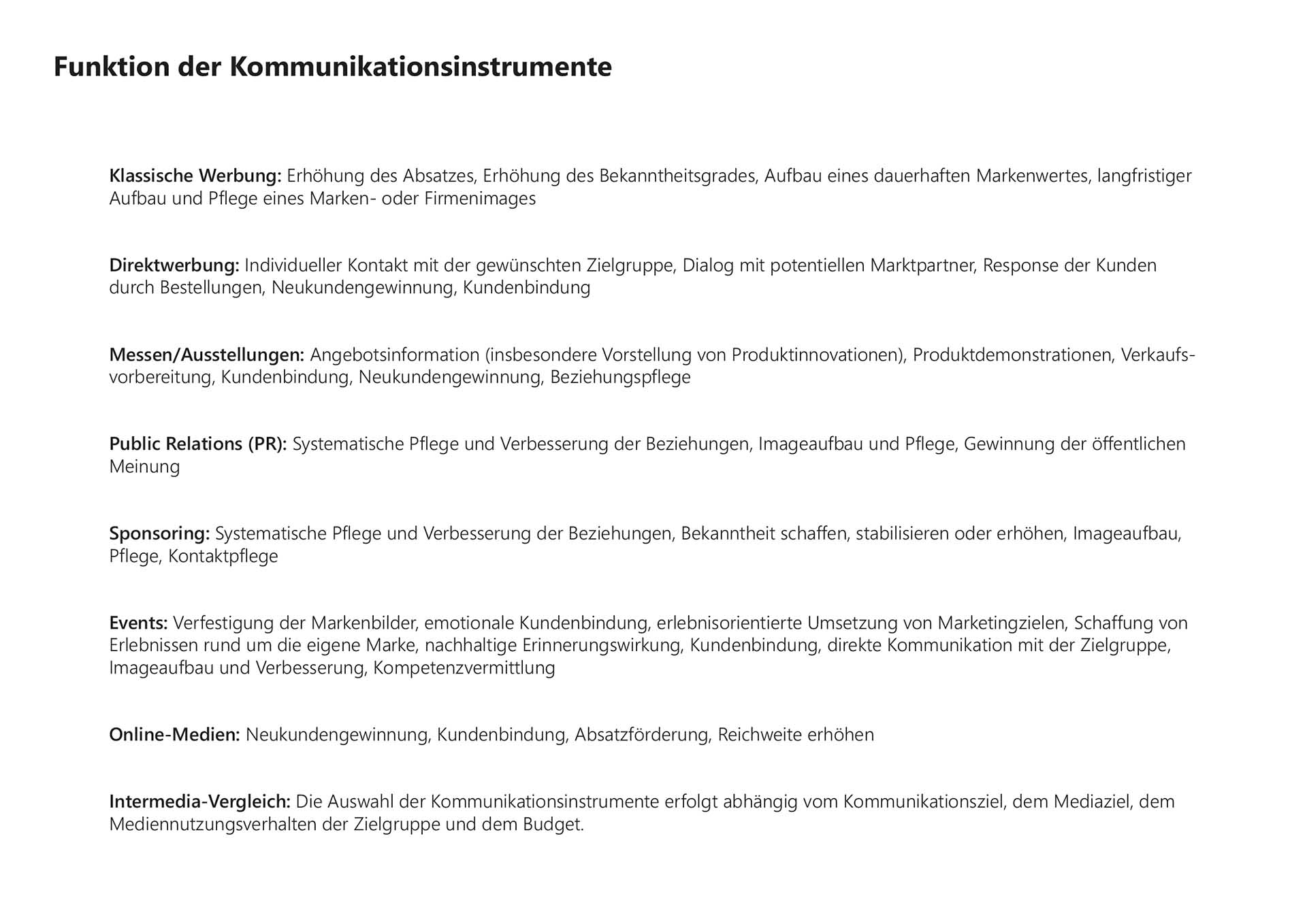 Produktpolitik (Hier sind besonders die Planung und Vorbereitung von produktbegleitenden Dienstleistungen zu erwähnen, um den Kunden von Kauf ab zu betreuen, dessen Wahrnehmung des Produktimages positiv zu beeinflussen und dessen Marken- und Produkttreue zu intensivieren)