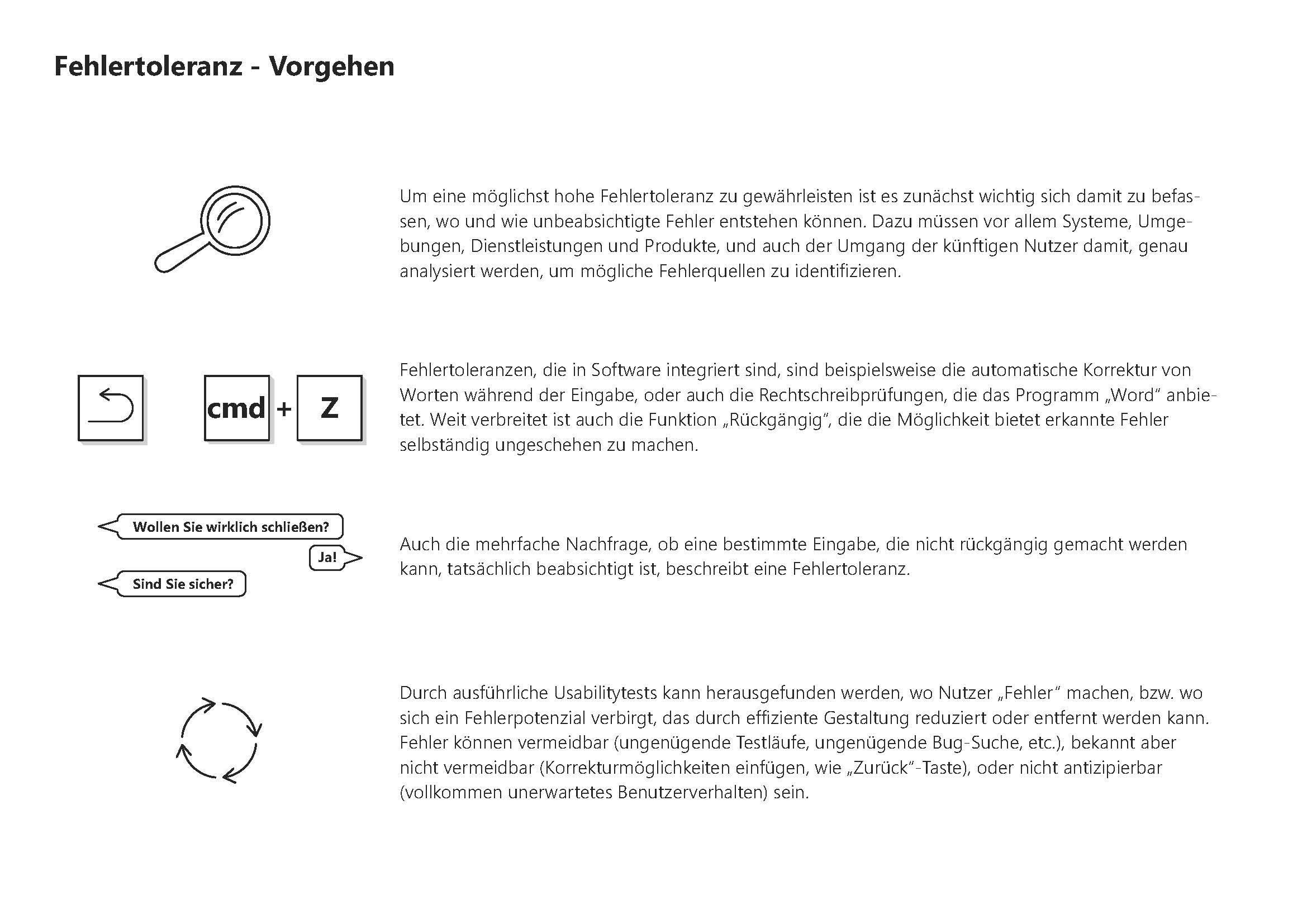 Auch die mehrfache Nachfrage, ob eine bestimmte Eingabe, die nicht rückgängig gemacht werden kann, tatsächlich beabsichtigt ist, beschreibt eine Fehlertoleranz.