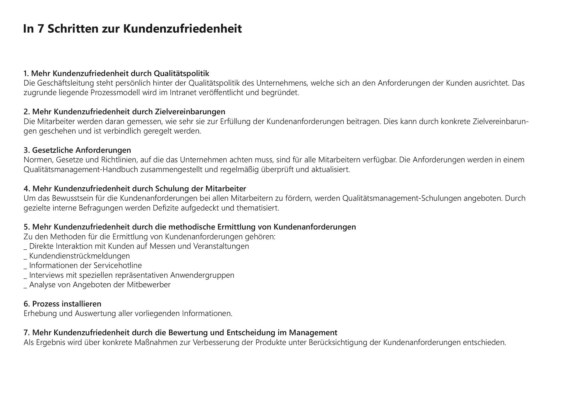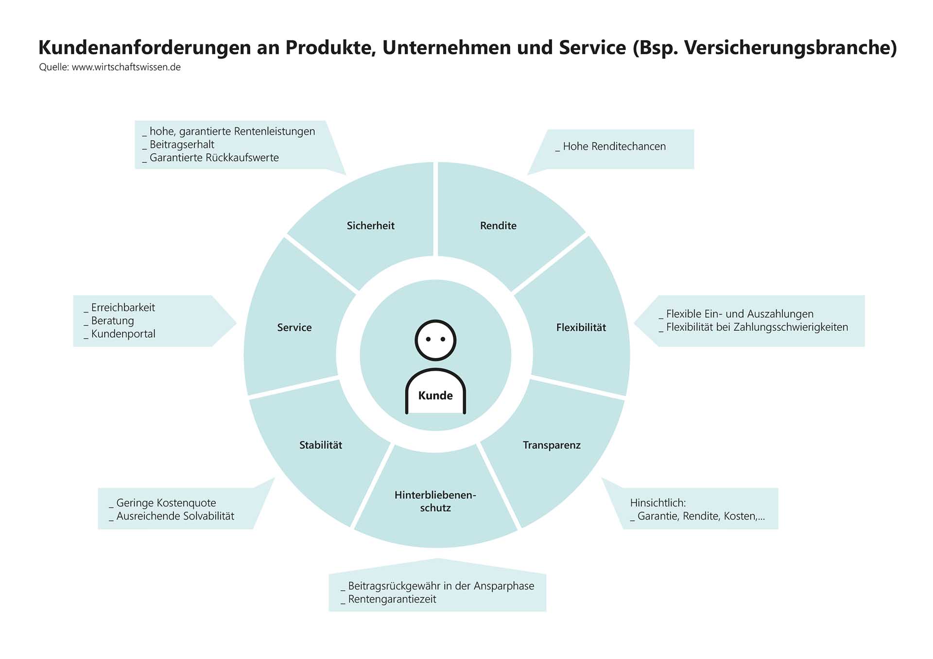 Jedes der Merkmal kann sich sowohl auf Produkte als auch auf Dienstleistungen beziehen und kann Einfluss auf die individuelle Kundenzufriedenheit haben.