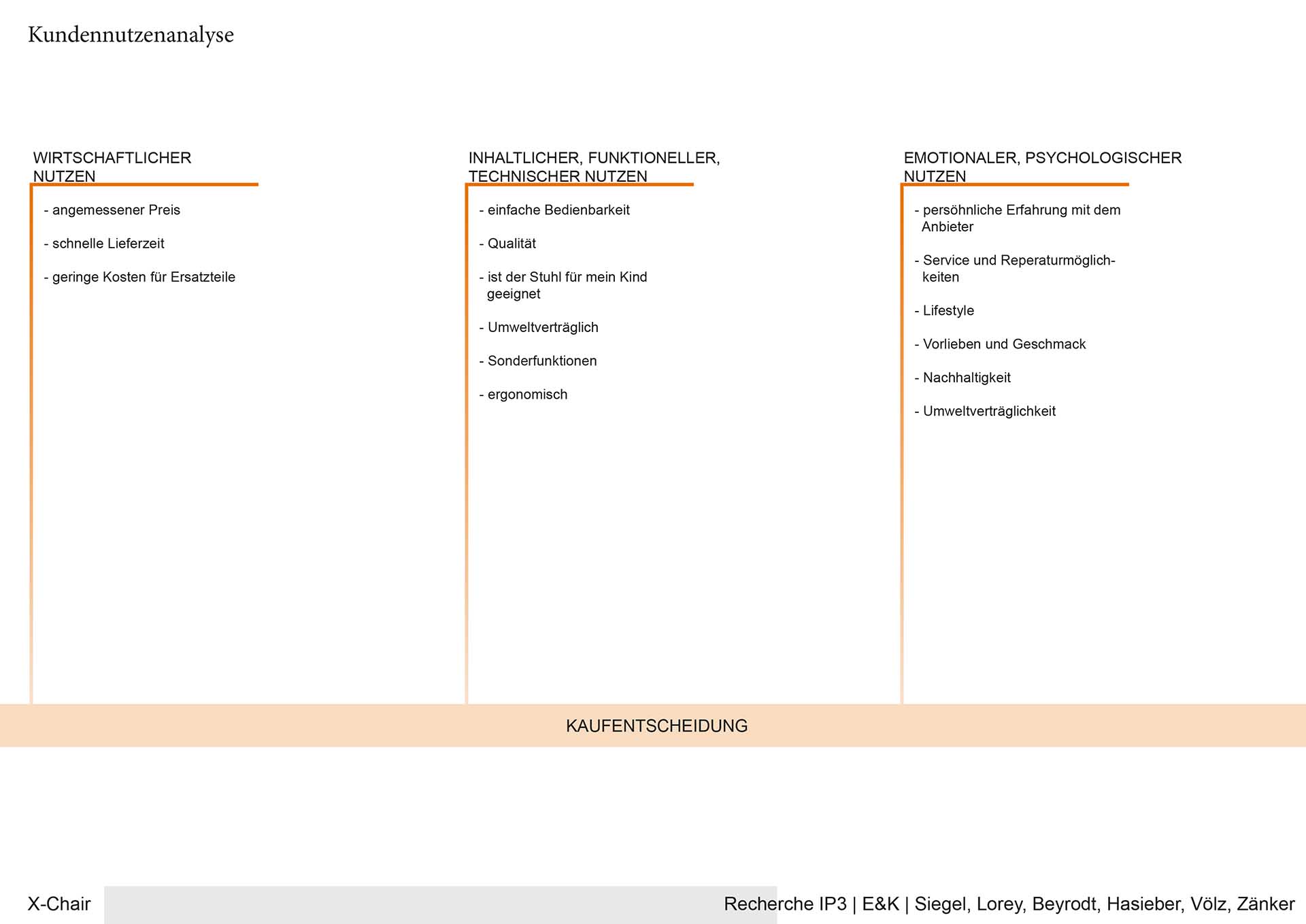 Die einzelnen Kriterien werden bewertet (z.B. nach Noten) und nach Wichtigkeit sortiert um Kundennutzenwerte herauszufinden.