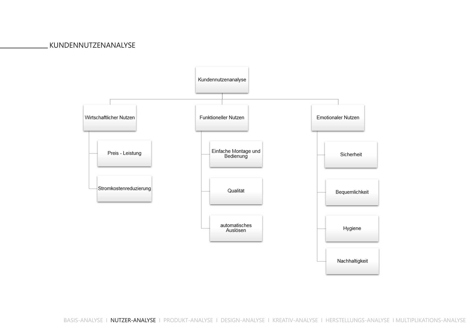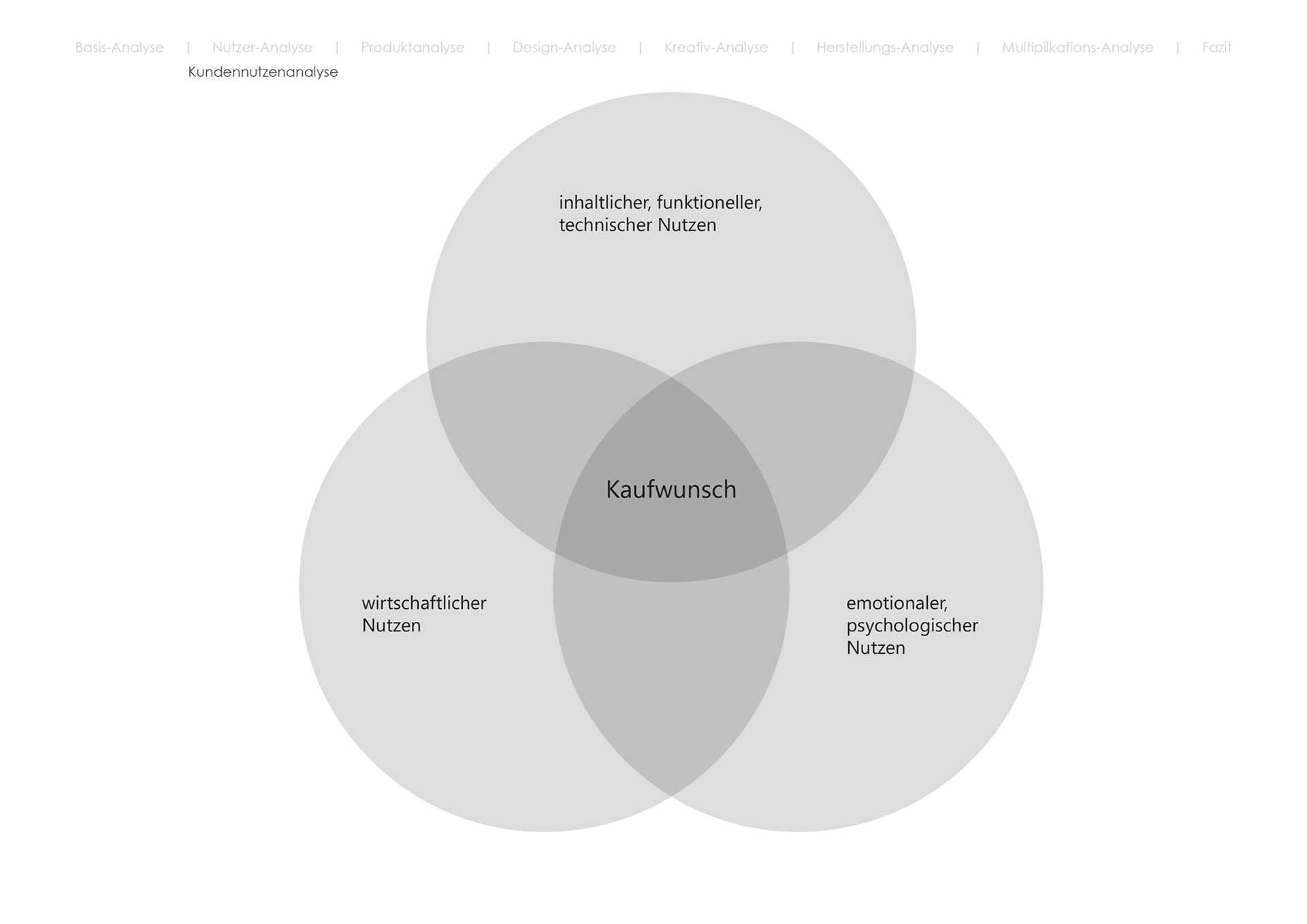 Die Analyse des Kundennutzens ist von hoher Wichtigkeit für den Entwicklungsprozess, da dieser maßgeblich an der Kaufentscheidung des Kunden beteiligt ist. Je höher der wahrgenommene Nutzen, desto höher ist die Kaufbereitschaft. Damit ist der Kundennutzen nicht nur ein entscheidender Wettbewerbsfaktor, sondern auch eine Richtlinie des Marketings und der Unternehmensplanungen.