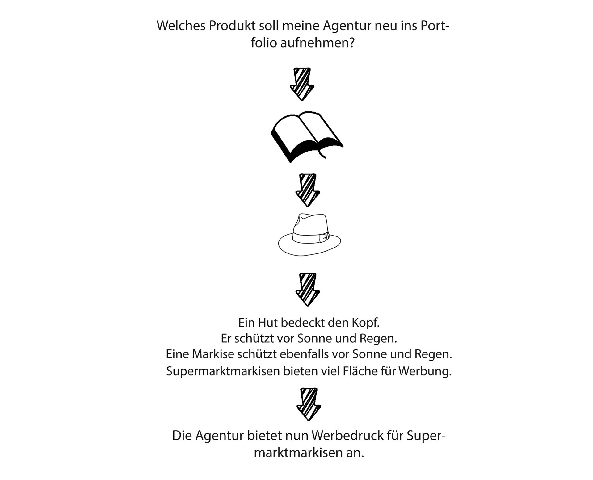 - Das Wort/Bild wird dann als Basis für Assoziationen, die zu neuen Ideen führen, genutzt.