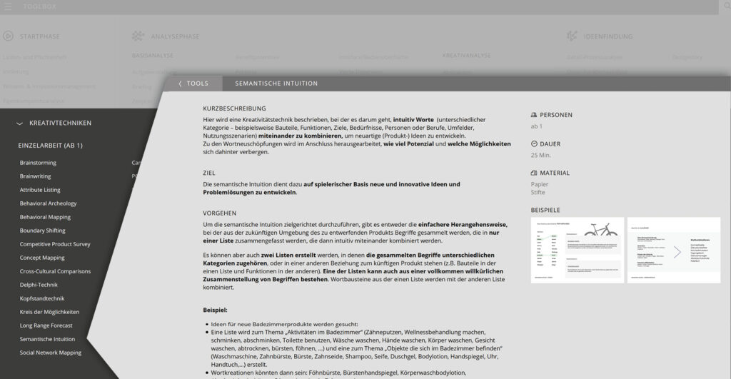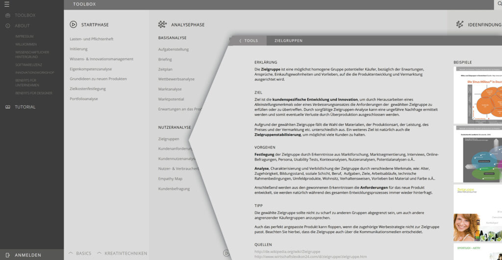 Die TOOLBOX ist Leitfaden und Lexikon zum design- und nutzerorientierten Entwicklungsprozess. Sie können die TOOLBOX kostenfrei nutzen.